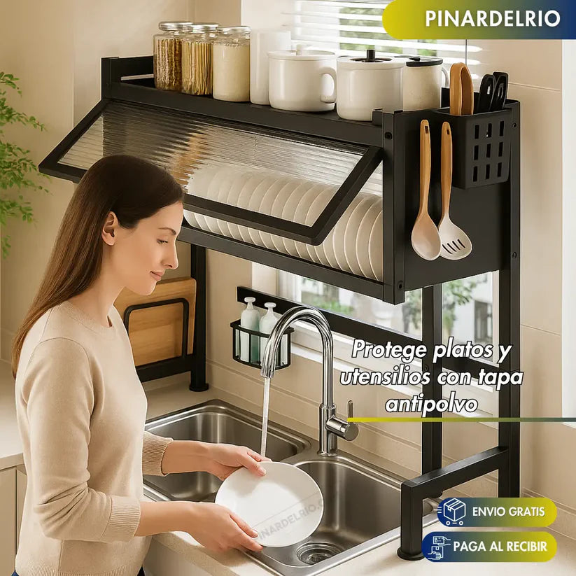 ☑️ Ahorra espacio en cocinas pequeñas. Su diseño vertical se instala sobre el fregadero, liberando encimeras.